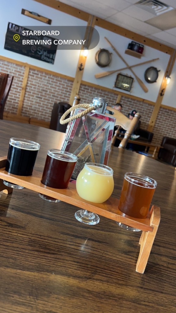Last but not least, a weekend getaway wouldn’t be complete without a visit to a brewery (or two). Sturgeon Bay host’s two great ones… Starboard Brewing Company and Bridge Up Brewing Company. Starboard is downtown near the shops, so we took a quick break for a flight there. The inside is tv-less, with some board games. If that’s not your thing, then hopefully the beer is, because it is very good. After my sister left for the day, we headed across the bridge to Bridge Up. Bridge Up Brewing Company is located under Sonny’s Italian Kitchen and Pizzeria. The basement is the brewery and has a record player and hundreds of records to choose from. It is right on the water so the view is great too. With the top two floors being dedicated to food, dinner was a no-brainer. And the great thing about the breweries location is the no wait for food if you play it right. The wait at the time we wanted to eat was over an hour (for a table), so instead we got a pizza to go and only had to wait 25 minutes. A final pint while waiting and then back to the Motel.