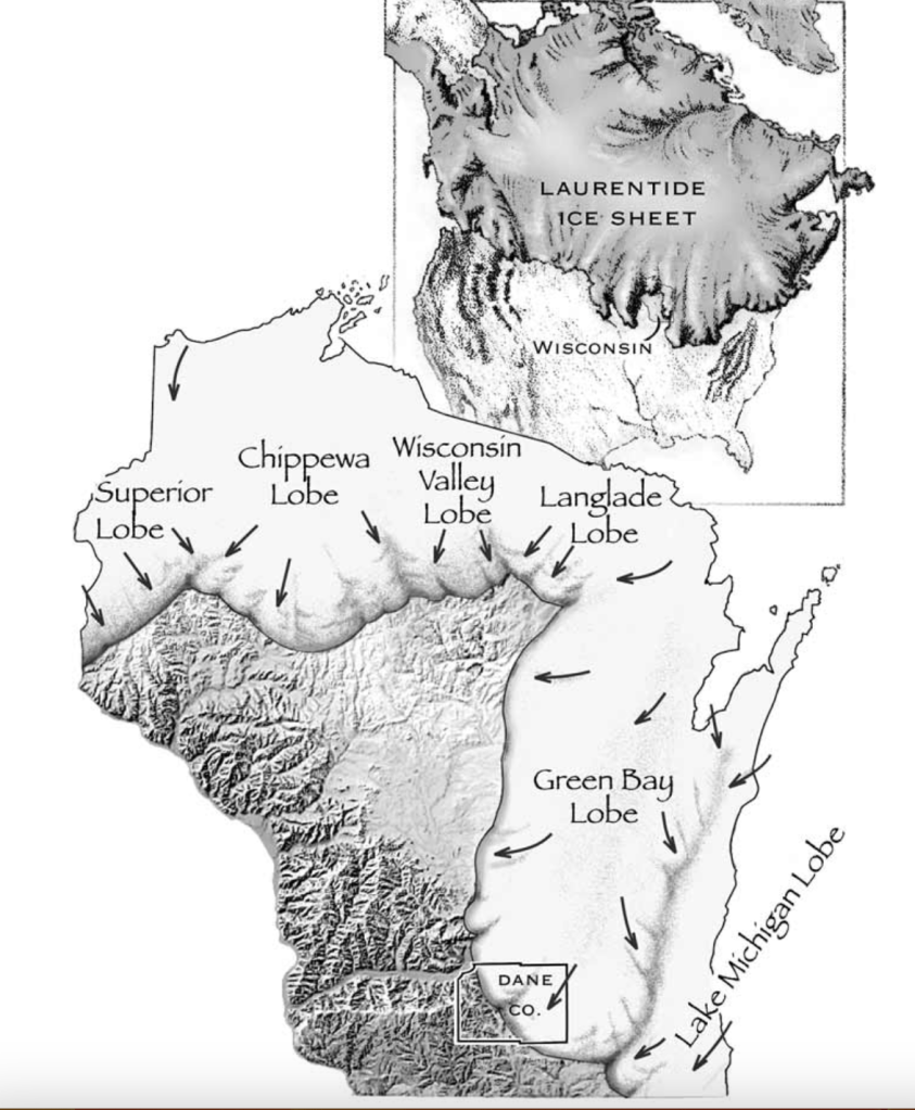 Geologically speaking, Wyalusing’s concentration of dolomite plays a large role in the landscape. Recall that the southwestern portion of our state is called the driftless region due to being relatively untouched by the last three glacial events. Also, I realize I just said “recall” as if I’ve done a post on this when in reality I’ve only actually mentioned it a handful of times and probably didn’t even explain that well. So, now you know. And a post on the driftless WILL come at some point, I promise. In the meantime, just look at this picture below and understand that Wisconsin got most of it’s looks due to glaciers, or in this case, lack thereof.