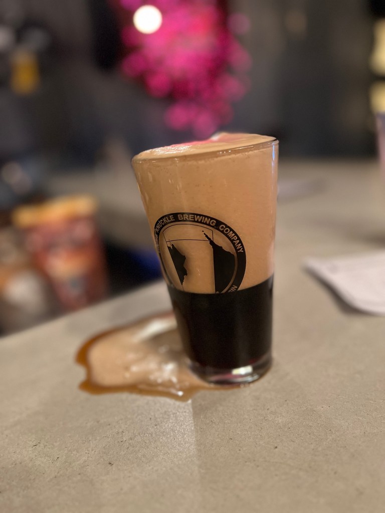 My personal take on Thumb Knuckle: even if you’re not trying to visit every single brewery, this should be near the top of your list. In addition to friendliness and welcoming atmosphere, the prices and fantastic beer, my favorite part of Thumb Knuckle is the stachelbier. As far as I know, no other place does this. Essentially, they take a very hot metal rod (bierstachel) and insert it into the beer for a few seconds. This originated in old-timey Germany to heat up the beer that was too cold to drink. Obviously this isn’t an issue anymore, but the science behind this is quite fascinating, and makes for a delicious byproduct. This is typically done with a porter, stout, or other dark beer, and the heat caramelizes the sugars, leading to a sweet, toasted marshmallow flavor of the foam (yes you’re supposed to drink the foam in this scenario – it’s literally delicious, so don’t knock it until you try it). For those concerned it’ll make your beer hot and disgusting, it doesn’t. The rod is only in the beer for a few seconds, which is just enough to foam it up and caramelize those sugars, but not long enough to affect the overall temperature of the beer. The resulting warm and flavorful foam with the cool beer makes for something so tasty it’s hard to put into words. It’s one of the coolest things I’ve seen done at a brewery, and if you’re a buff of classic German and European beer and beer history, the trip here for a stachelbier is worth it alone.
